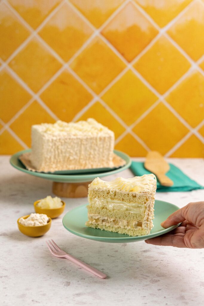 O Abacaxi com Leite Condensado #79 é preparado com massa branca e recheios de mousse branca com abacaxi e leite condensado. A cobertura segue a mesma combinação, finalizada com a fruta. Clássico e muito popular no verão brasileiro, o abacaxi, aliado à leveza da mousse branca, resulta em uma combinação ideal para as altas temperaturas da estação.