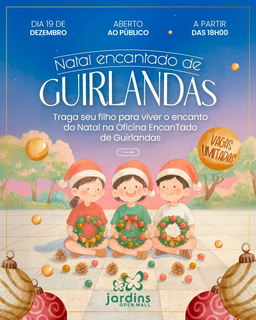 O Jardins Open Mall segue com sua programação especial de dezembro e apresenta, nesta semana, uma agenda que combina música ao vivo, atividades infantis e experiências criativas em meio ao seu jardim aberto. As atrações acontecem entre os dias 17 e 21 de dezembro e reforçam a proposta do empreendimento de oferecer momentos de convivência, lazer e contato com a natureza durante o período natalino.