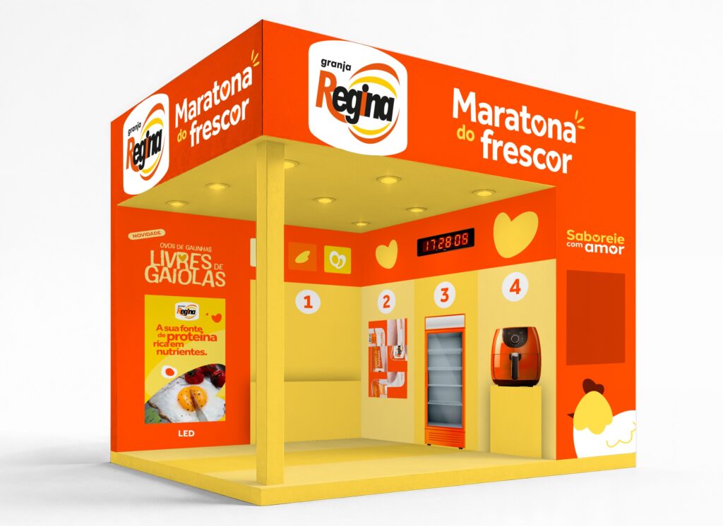 Com um espaço de 20 metros quadrados, o estande da Granja Regina traz como tema a “Maratona do Frescor”, reforçando o compromisso da marca com alimentos frescos e de qualidade. A ativação será composta por um circuito interativo, onde o público será desafiado, em duplas, a completar etapas.